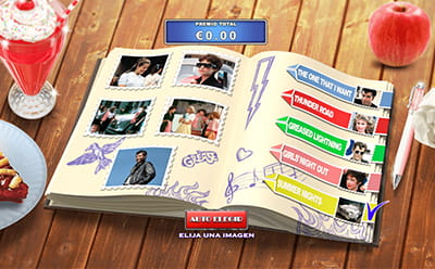 El Scatter, cuando aparece en los carretes 1+3+5 simultáneamente, puede activar la función del Bonus Jukebox. En esta función que es bastante interesante tienes la posibilidad de escoger entre tres opciones: 12 Giros gratis Better Shape Up, Dinero Bonus Rydell High Yearbook y 4 Giros gratis Summer Nights. La función de los 12 giros gratis Better Shape Up te ofrece giros durante los cuales los símbolos Danny y Sandy se transforman en el símbolo Danny&Sandy (imagen donde los protagonistas aparecen juntos). Durante estos giros los símbolos que aparecen son solo los del mayor pago y el Wild.